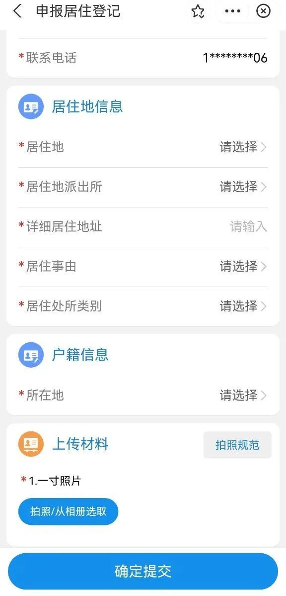 1. 个人身份证原件及复印件; 2. 近期一寸免冠彩色照片; 3. 房屋租赁合同或购房合同; 4. 房屋产权证明或房屋租赁登记备案证明; 5. 居住地公安机关要求的其他材料。