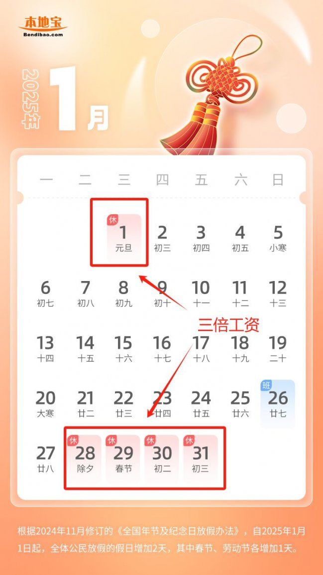 ### 三倍工资日期一览(2025年春节)