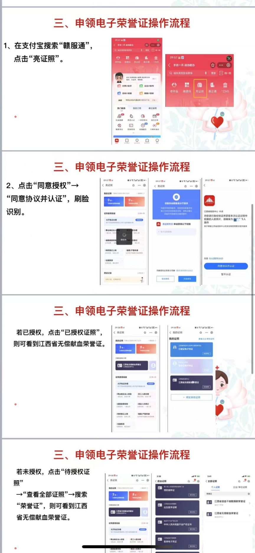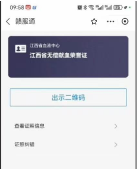满足“三免优待”对象人群,打开自己手机,在支付宝搜索“赣服通”,点击“亮证照”,再点击“江西省无偿献血荣誉证”,再点击“出示二维码”,驾驶员看到“二维码”图片后,准予上车。
