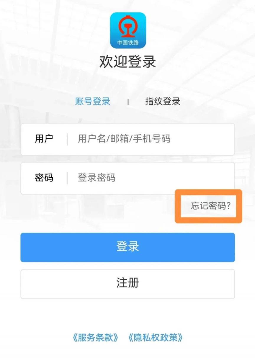 首先,打开铁路12306App,进入登录页面,点击下方的“忘记密码”。