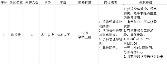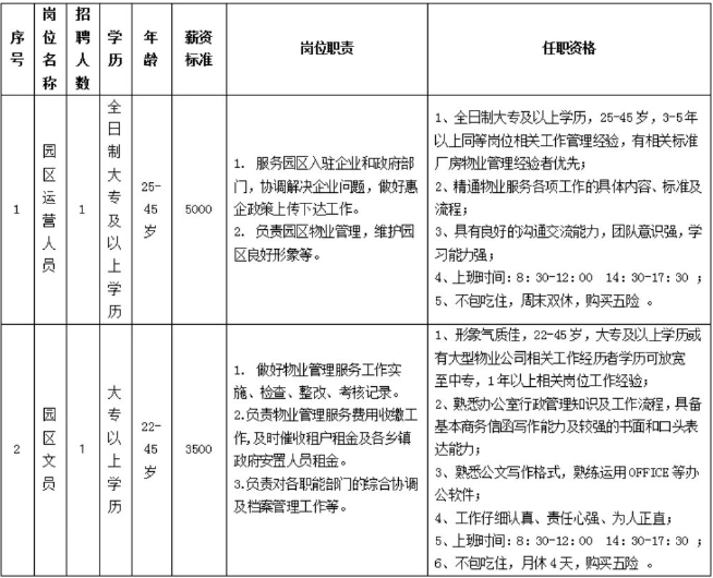 本次公开招聘园区运营人员1名,文员1名,消控员2名。