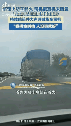 结果呢?就在巡逻车还没到的当口,货车司机终于——不是看到火,而是音乐放完了,他摘了下耳机想调整。这一摘,才听见外面的喇叭声和风声里的呼喊。他扭头一看,副驾的丈夫正拼命挥手,指着他车底下。司机一愣,低头瞅了瞅后视镜,这下脸都白了——烟已经冒得老高,他赶紧打双闪,减速往应急车道靠。