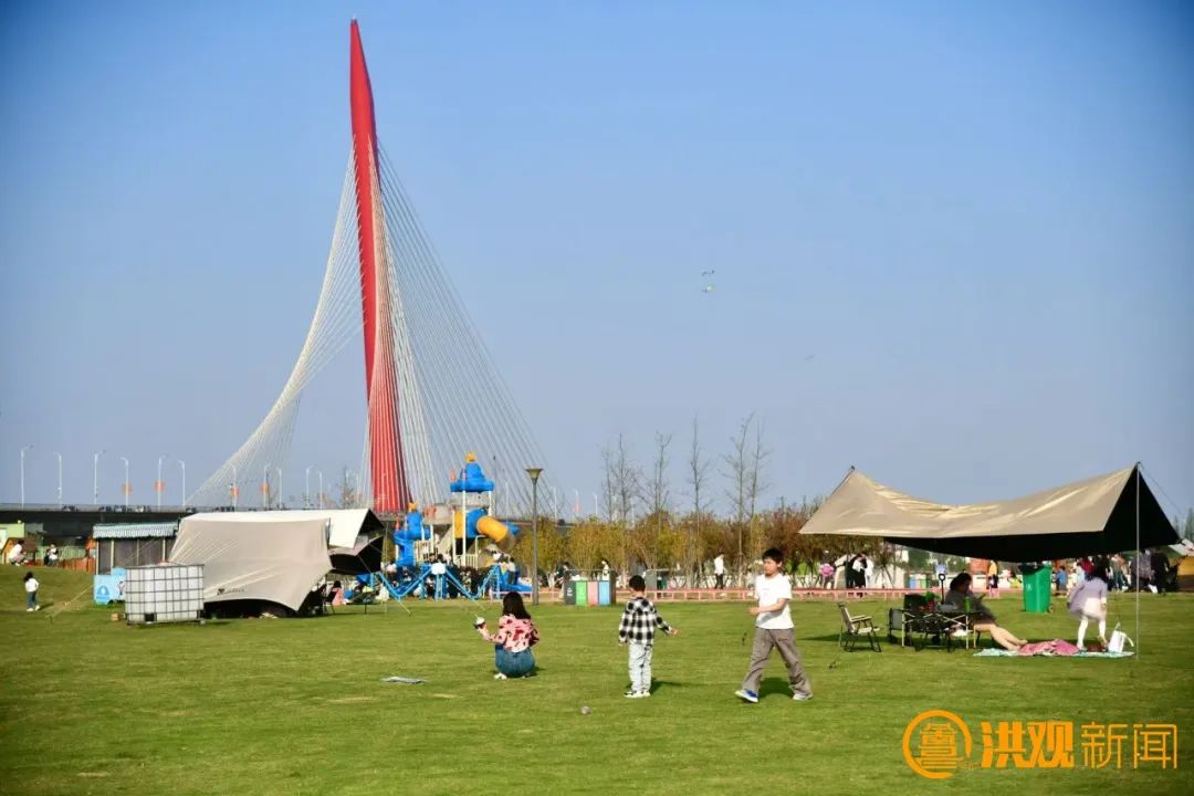 在赣江畔,一个个能近距离观看南昌城市“海景”的露营地颇为抢手,不少市民游客携家带口“不负春光”赶来。“在这里看着‘海景’,再看看不远处的高楼和摩天轮,这种人与自然和谐相处的感觉特别好。”市民熊旺表示。