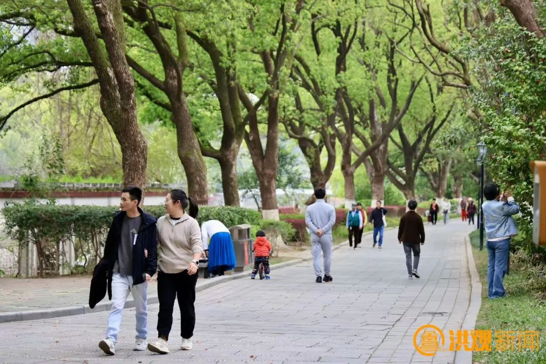 在南昌梅岭景区,蜿蜒山道上,踏青的人潮与漫山的春色相映成趣,宛如一条流动的春日画廊。清晨8时起,蟠龙峰景区登山道便迎来络绎不绝的游客,一家老小、户外团队有序向上攀登。“山上不能开车,有观光车往返,我们选择徒步,既锻炼身体又能沿途欣赏美景。”观景台上,大学生小叶忙着和朋友们打卡拍照,山峰云雾间传来此起彼伏的笑声。据统计,4月4日至5日,梅岭景区各景点共接待游客2.2万余人次。